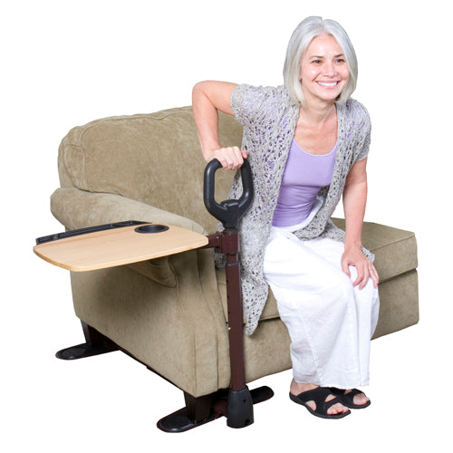 Ergonomic Safety Handle-makes Standing And Sitting Easy And Safe * Swivel Tray-multi-use Laptop/tv Tray With Cup Holder And Utensil Compartment * Adaptable-adjusts In Length And Height To Fit Either Side Of Your Favorite Couch Or Chair * Height Of Tray:26 To 32 * Height Adjustment Handle: 34 To 40 * Size Of Tray: 16 X 18 * Provides Assistance Standing & Sitting * Swivel Tray Pivots 360 Degrees * Swivel Tray Pivots Away When Not In Use * Weight Limit Of Handle: 250 Lbs *